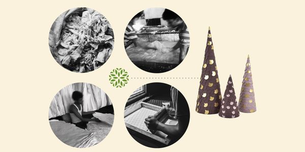 Pre-consumer organic waste is diverted from landfills; the recycled cotton fabric, a by-product of the apparel industry, is used to make our handmade paper. The quality is highly tensile and stronger than