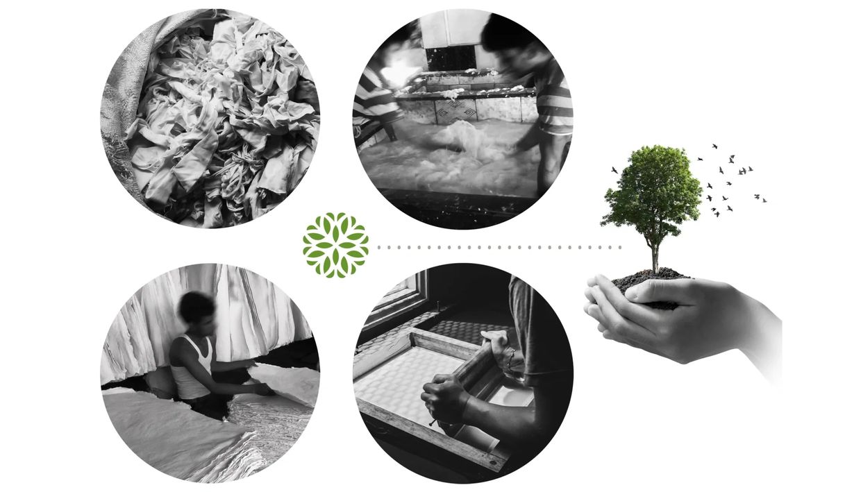 Fabric waste from the fashion industry is used to make our handmade paper range plastic free. Every step of the paper production process is done by hand, from making the cotton fibre pulp to pressing paper in deckles and drying. This process conserves water, and energy and eliminates toxic pollution.